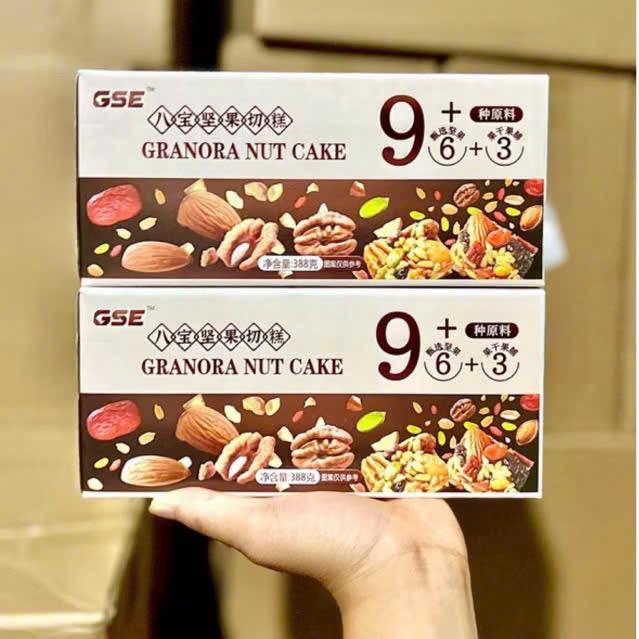 Bánh Granola siêu hạt dinh dưỡng - hộp 388g Granora Nut Cake là sản phẩm bánh hạt giàu dinh dưỡng, được làm từ các loại hạt như hạt hướng dương, chà là đỏ, hạt đậu phộng, nho đỏ, hạt bí đỏ, dâu tây, hạnh nhân cắt nhỏ, quả óc chó cắt nhỏ và hạt mè.