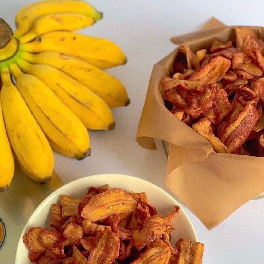 Chuối Xanh Sấy Mộc (Không Đường), vị thơm ngon y hệt chuối tươi, Chuối Sấy giòn rụm, nhăm nhi mãi không ngán.