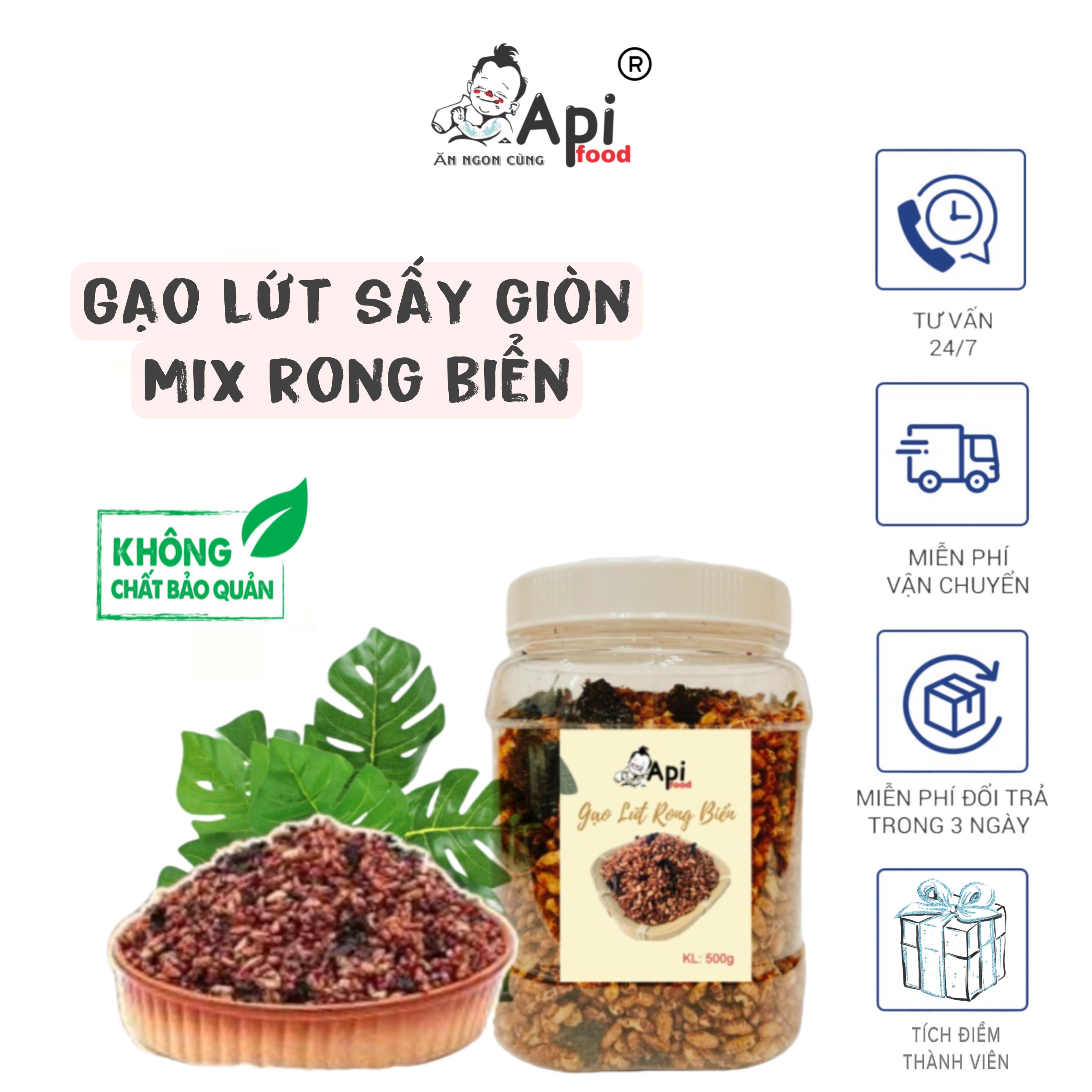 Gạo lứt rong biển giòn, xốp, thơm ngon, giữ được hàm lượng các chất dinh dưỡng ban đầu, là món ăn liền tiện lợi và tốt cho sức khỏe. Với sự kết hợp giữa gạo lứt rang và rong biển sấy, có gia vị sẵn. Gạo lứt rong biển giòn, xốp, thơm ngon, giữ được hàm lượng các chất dinh dưỡng ban đầu, là món ăn liền tiện lợi và tốt cho sức khỏe. Còn gì bằng khí vừa xem phim, đọc sách hoặc trò chuyện cùng bạn bè và nhăm nhi gạo lứt rong biển.
