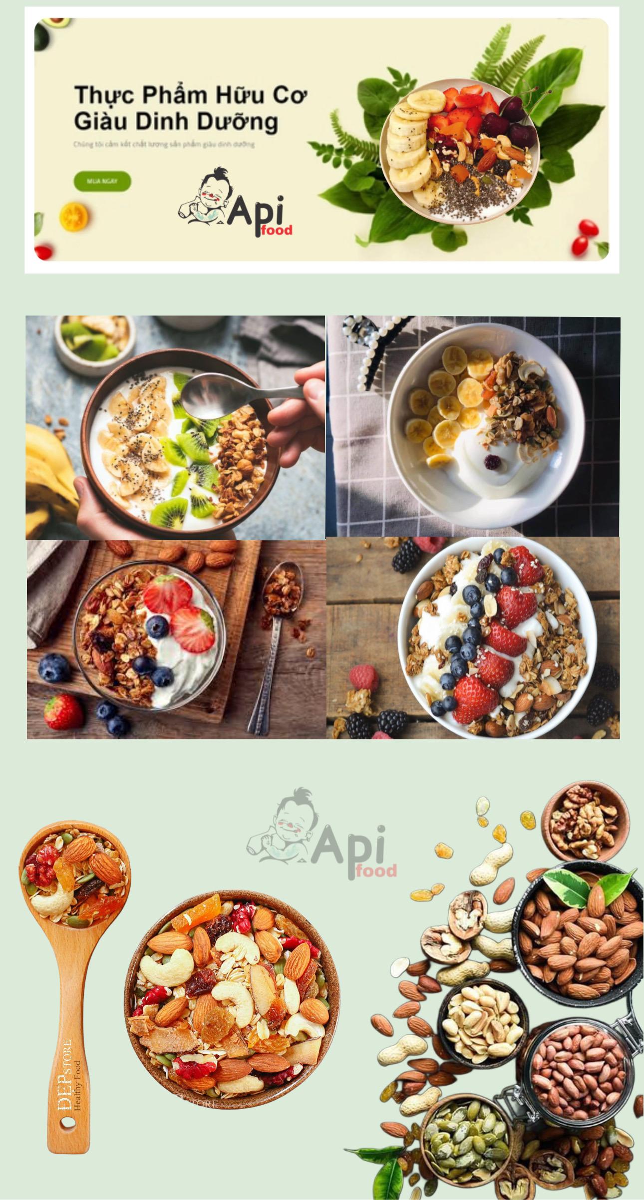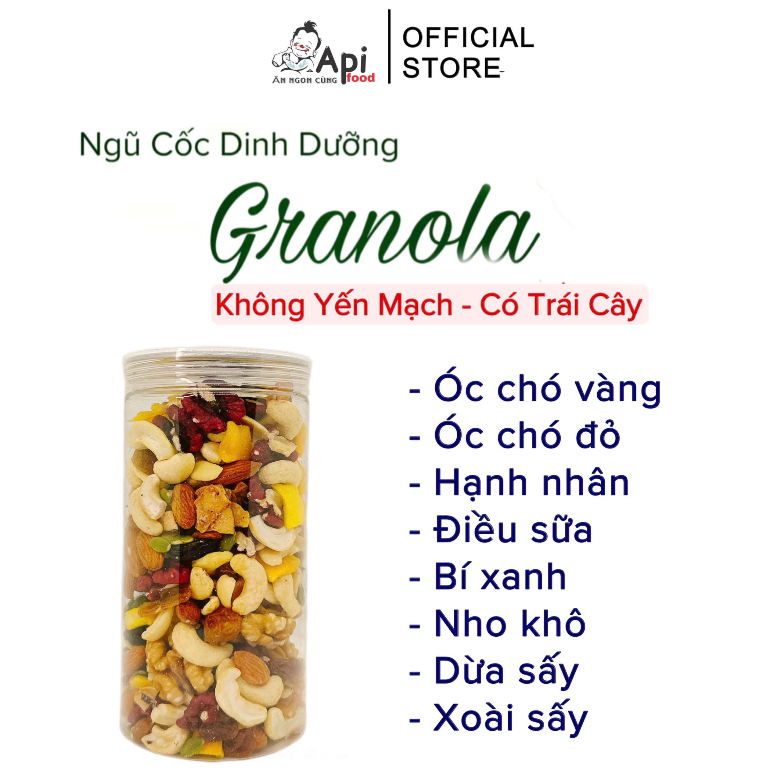 - Ngũ cốc Granola - Api Food tự tin đáp ứng các tiêu chí trên với thành phần dinh dưỡng bao gồm