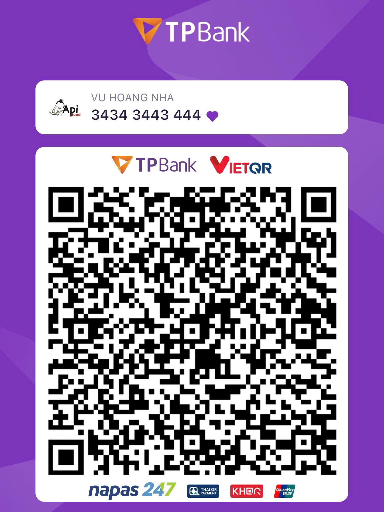 *** Lưu Ý: Sau khi chuyển khoản khách hàng vui lòng chụp lại màn hình xác nhận thành công và gửi qua Zalo OA Api Food