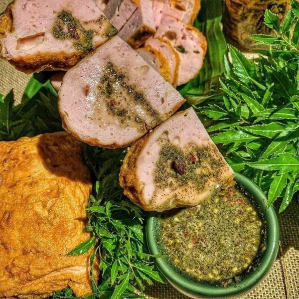 Muối rau răm là sự kết hợp giữa vị mặn của muối mà lá rau răm, tạo nên món thức chấm độc đáo.