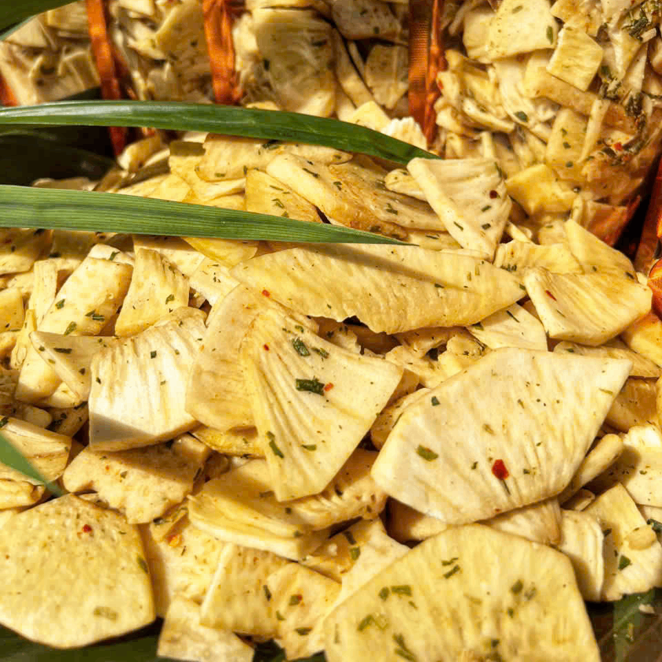 Chúng tôi tự hào mang đến một sản phẩm không chỉ ngon miệng mà còn an toàn cho sức khỏe. Mỗi gói Sake Sấy Mắm Hành Giòn Tan đều là tâm huyết của chúng tôi, từ khâu chọn lọc nguyên liệu đến quy trình chế biến nghiêm ngặt, thái lát mỏng đều tay rồi sấy giòn vàng ruộm. Khi kết hợp cùng sốt mắm hành đậm đà, thơm lừng, từng lát sake trở nên hấp dẫn với lớp áo mặn ngọt hài hòa, cay nhẹ, béo bùi tự nhiên.