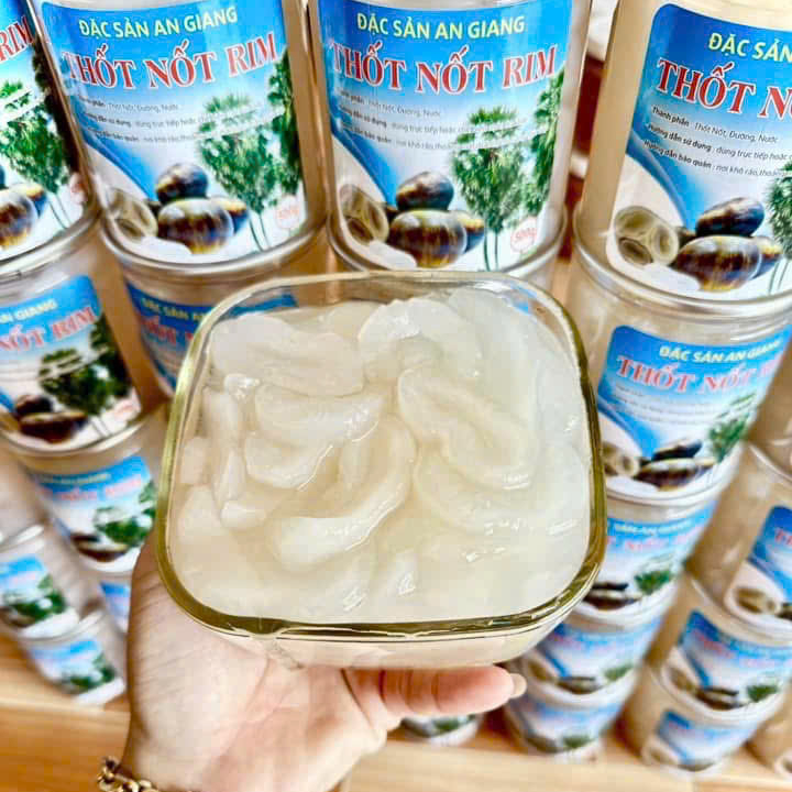 "Thốt nốt rim đường phèn" là một món ăn vặt dân dã của Việt Nam, được làm từ thốt nốt tươi được rim với đường phèn. Thốt nốt có vị ngọt thanh mát và hương thơm đặc trưng, khi được rim với đường phèn sẽ trở nên giòn sần sật và có vị ngọt thanh hơn. Món ăn này rất thích hợp để ăn vặt hoặc làm quà tặng.
